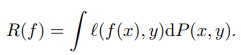 우선, random feature vector x, 와 random target vector y 를 두고 이 둘의 joint distribution P(x,y) 가 있다고 하자. 쉽게 말하면, 입력-정답 쌍이 있는 데이터의 모집단 분포이다. x-y 관계를 학습하는 함수 f 를 통해 나온 예측값과 실제 y 간 차이에 대해 penalty 를 주는 loss 를 두고 이에 대한 기댓값을 계산하면 expected risk 가 된다.