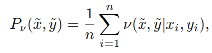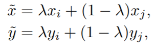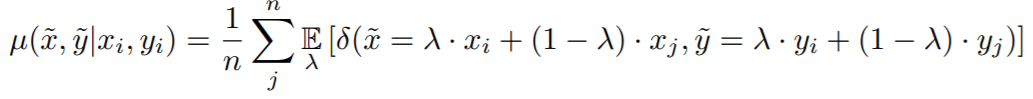 일반화 식은 우리가 가지고 있는 모든 데이터셋을 통해 vicinity 를 구하지만, 쉽게는 아래와 같이 2쌍의 (x,y) 로 vicinal distribution 을 생성할 수 있다.