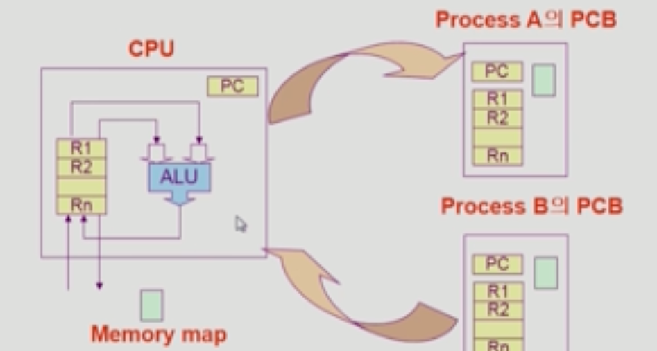 - cpu 를 새롭게 얻는 process의 상태를 pcb에서 읽어옴. cpu 가 다른 process로 넘어갈 때 os 는 다음을 수행
