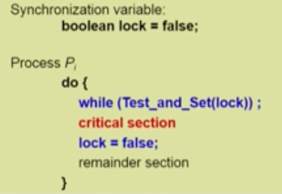 - 하드웨어적으로 test&modify 를 atomic 하게 수행할 수 있도록 지원하는 경우 앞의 문제는 간단히 해결