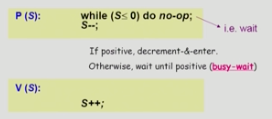 - P(S) : 자원을 하나씩 꺼내가는 것, lock 을 건다