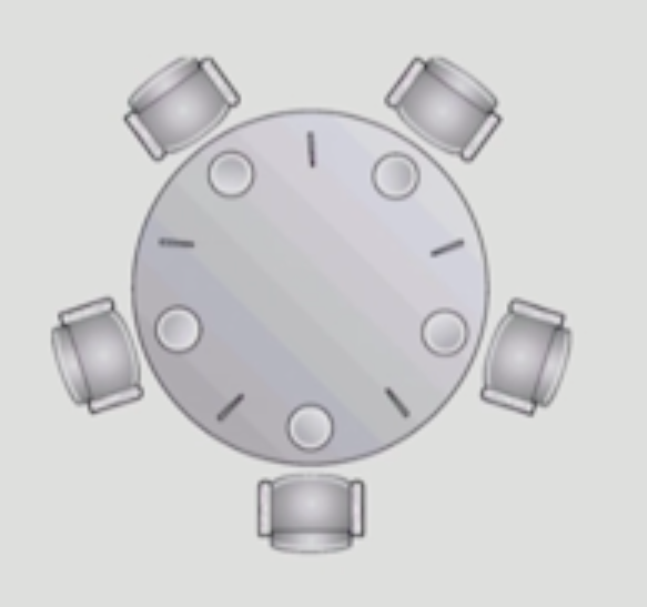 철학자들이 간헐적으로 밥을 먹는데, 양쪽에 있는 젓가락을 필요로 한다.