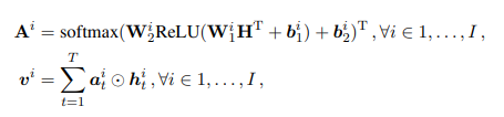 그 후, tanh 를 activation 으로 하는, layer 가 2개인 MLP 를 쌓고 softmax 값을 취해주면 self-attention layer가 된다. 이 때 최종 A 의 차원이 [1,n] 가 되게끔 한다. 이 때 각 paratmer W의 차원은 각각